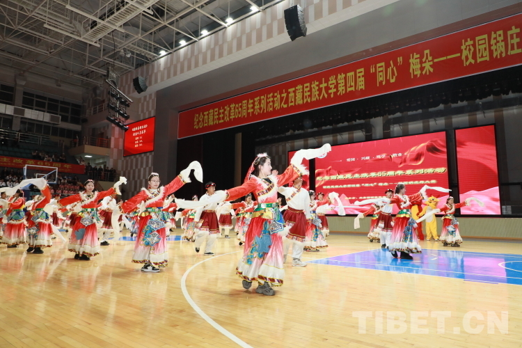 這是一場視覺與文化的盛宴,這是一場2000多人觀看的鍋莊舞大賽,這是西藏民族大學舉辦的第四屆“同心”梅朵鍋莊舞大賽。穿著民族服飾,踏著舞曲鼓點,西藏民族大學的師生們用最歡快的方式歌頌美好幸福生活。