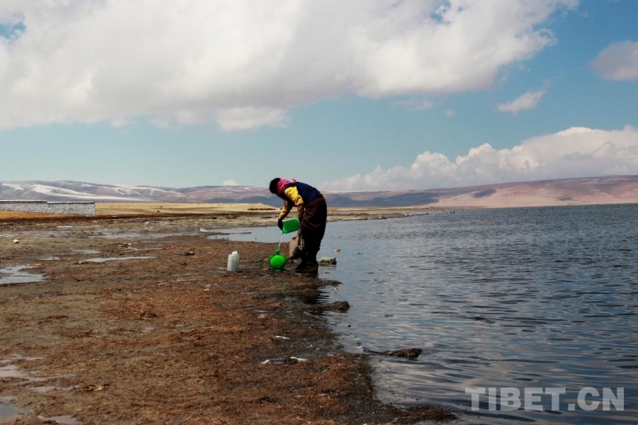圖為群眾在位于西藏自治區阿里地區普蘭縣的瑪旁雍錯汲水 攝影:劉莉