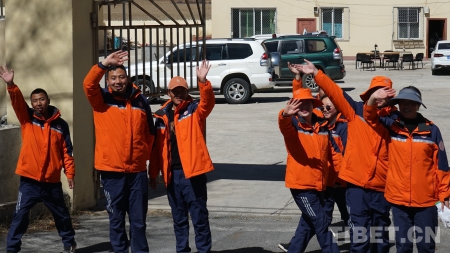 圖為臨行前,養(yǎng)護(hù)職工們向川藏線采訪組揮手致意 攝影:張宇