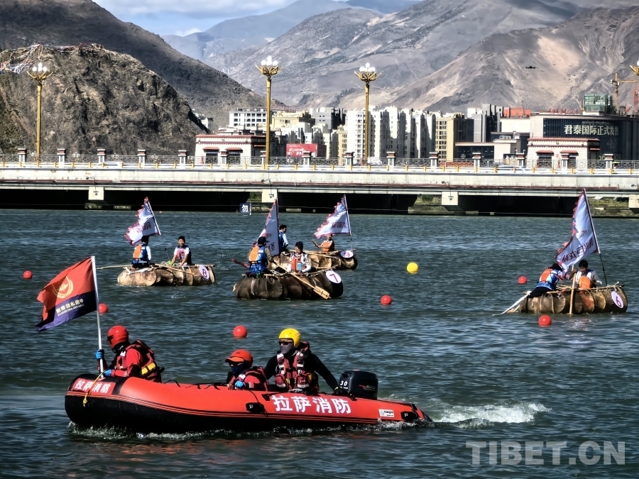 中國西藏網訊 6月9日,由西藏自治區體育局、拉薩市人民政府主辦的2024年西藏自治區端午節牛皮船(龍舟)賽在拉薩市金珠東路濱河公園水域開賽。