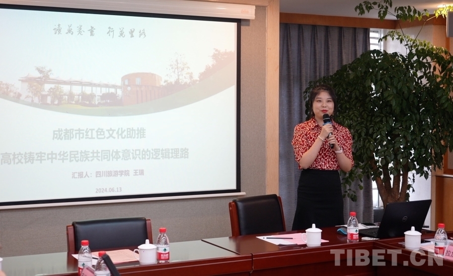 四川旅游學(xué)院四川省鑄牢中華民族共同體意識基地辦公室主任王瑞介紹了成都市豐富的紅色文化資源,從內(nèi)在關(guān)聯(lián)和實踐路徑兩個層面探討了紅色文化與中華民族共同體意識的契合度,以及助推高校鑄牢中華民族共同體意識的方式方法。