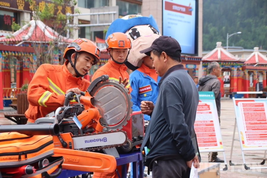 現場設置了政策法規、安全知識宣傳區、救援設備展示區、警示教育展板區、有獎互動等多項活動區域?;顒悠陂g,中隊指戰員通過發放防災減災宣傳資料、講解安全生產常識的形式向來往群眾宣傳普及森林火災、洪澇、山體滑坡、地震等自然災害逃生自救互救基本知識和技能。同時,在現場展示各種救援裝備器材的用途和操作方法,耐心解答群眾提出的各種問題。