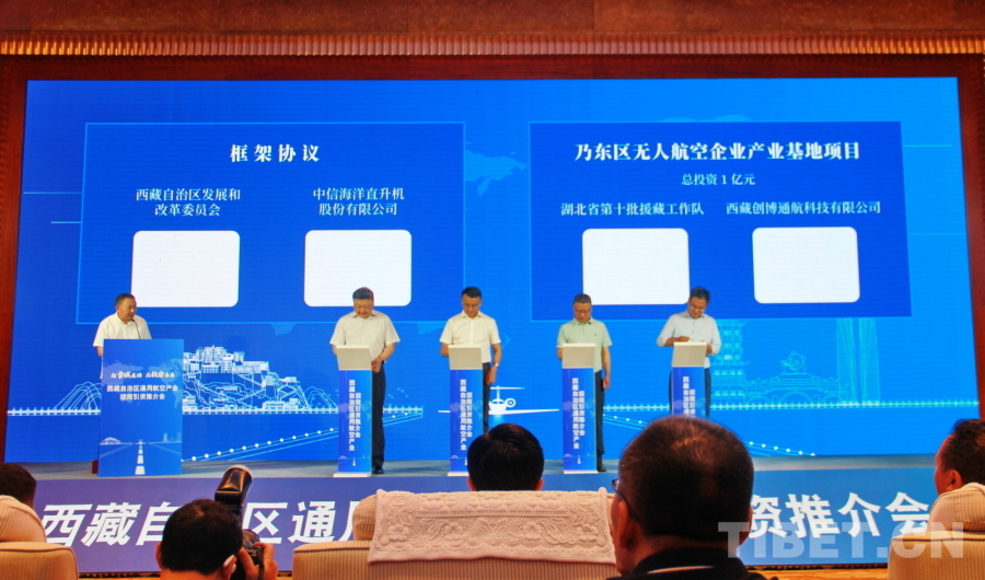 中國西藏網訊 6月18日,西藏自治區通用航空產業招商引資推介會在成都舉行。推介會上,西藏自治區投資促進局等5個單位與6家公司進行了簽約。