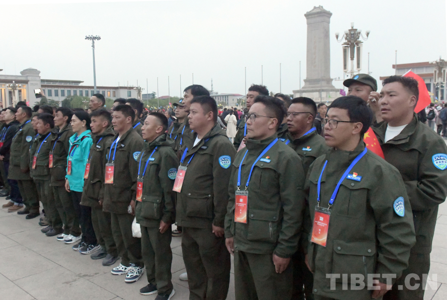 當日凌晨,懷著萬分激動的心情,來自西藏羌塘、珠穆朗瑪峰國家級自然保護區的野保員一大早就來到了天安門廣場,等候國旗冉冉升起的那一刻。