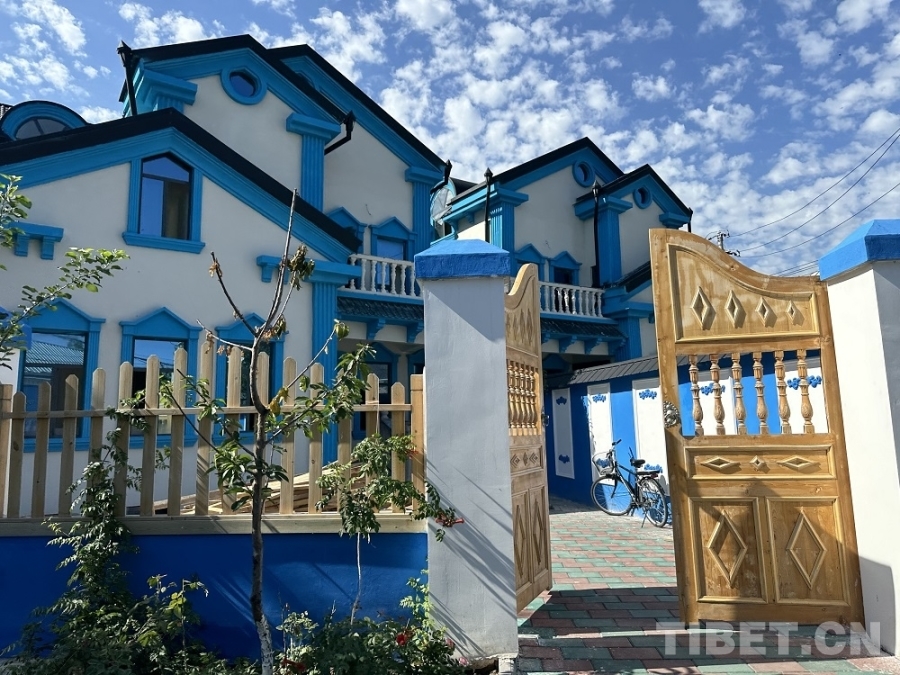 圖為喀贊其老街內隨處可見的“伊犁藍”建筑 攝影:楊眉笑
