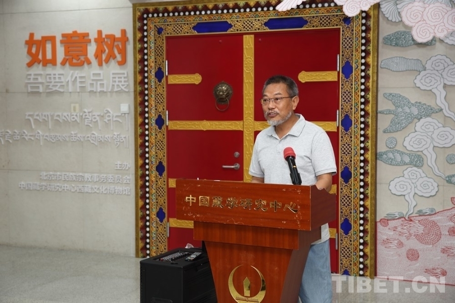 中國西藏網訊 7月5日,由北京市民族宗教事務委員會指導、中國藏學研究中心西藏文化博物館主辦的“如意樹——吾要作品展”在京開幕。中國藏學研究中心有關負責人和專家學者、北京市民族宗教事務委員會有關負責人、書籍設計師吾要及北京藝術界人士等60余人出席開幕式。