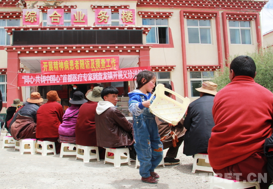 在查龍鎮甘孜縣達通瑪中心衛生院義診現場,不僅貼心地為前來就診的群眾準備了小凳子,還安排了不少志愿者,攙扶行動不便的患者就醫。
