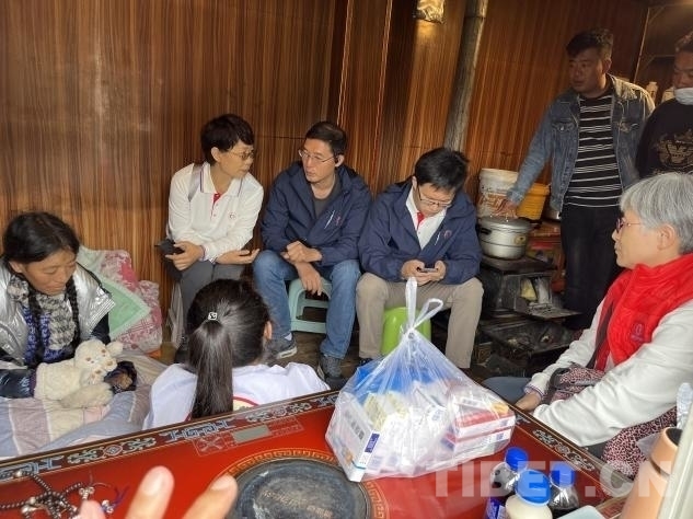 在義診活動進行的同時,幾位專家還分撥前往貧困家庭慰問。其中,北京地壇醫院的中醫科副主任楊玉英,北京地壇醫院婦科副主任劉軍,北京老年醫院呼吸科副主任劉前桂,北京大學第一醫院骨科副主任徐貝宇一行來到了離措拉鎮不遠的德西村山坡上,去阿珍家慰問看診。據了解,阿珍的母親沖曲措于 2019 年進行了胃癌手術,術后做了五次化療,于 2020 年末完成化療。然而,2024 年 6 月份,沖曲措又被查出患有肺炎。由于吃不下飯,沖曲措體重嚴重下降,營養嚴重不良。。