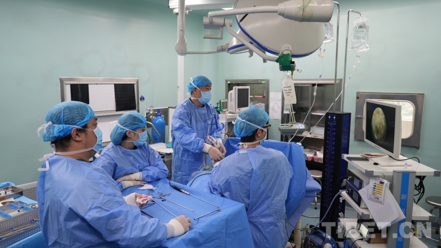 圖為張西峰醫(yī)生(左三)在甘孜藏族自治州人民醫(yī)院為脊柱病變患者做手術(shù) 李錄場 攝