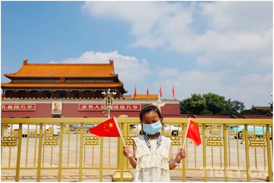 圖為澤多和澤丹父女倆在天安門前合影 攝影:龍真多吉