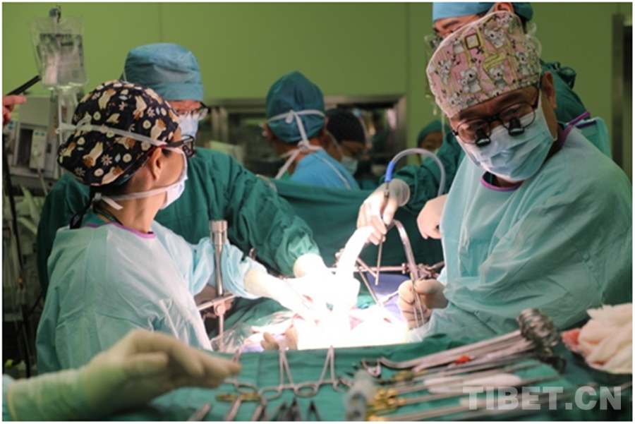 圖為醫療專家團隊正在為患兒實施手術 攝影:龍真多吉