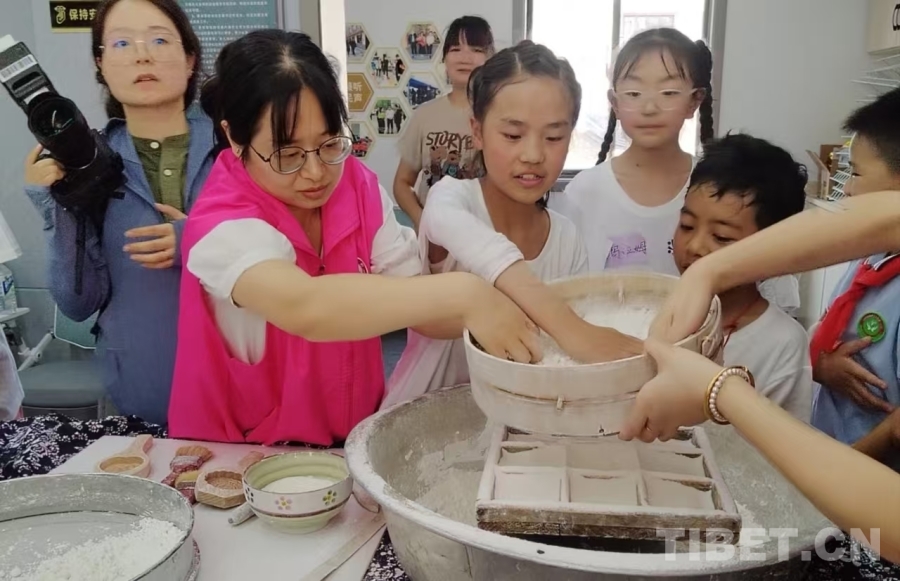 做印糕、纏盤扣、感受沙地文化……在頭蓬老街,理塘縣青少年研學團和錢塘區義蓬街道少先隊員們感受了一場別開生面的非遺文化盛宴,印糕傳承人俞師傅展示了印糕的制作過程,遠道而來的理塘“伢兒”還動手自己做印糕,纏盤扣。“看著簡單,自己做還是很有難度,但是做成功了又很有成就感!”尕瑪拉姆表示。
