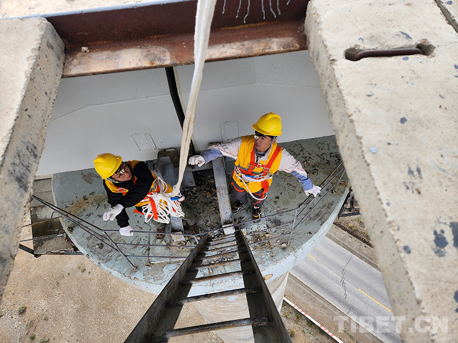 據介紹, 三岔河地段山高溝深,作業人員要在距離地面幾十米高的地方進行檢查,還要進入空心墩內部攀爬檢測,必須時刻注意安全防護,他們重點對橋梁空心墩外觀、混凝土強度、鋼筋位置及保護層厚度全方位進行檢測和掃描。經過90分鐘的緊張作業,作業人員圓滿完成了當日最高圓形薄壁空心墩內部的檢測任務。(中國西藏網 通訊員/陳少峰 文振軍)