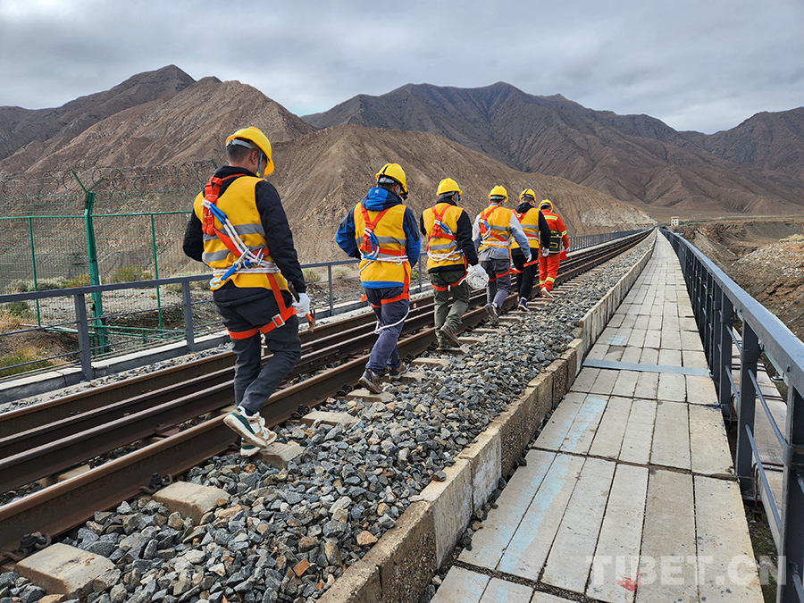 中國西藏網訊 9月28日,在青藏鐵路三岔河特大橋上,中國鐵路青藏集團公司格爾木工務段8名橋隧工正在給橋梁做“體檢”,進行一年一度的橋墩檢修工作。
