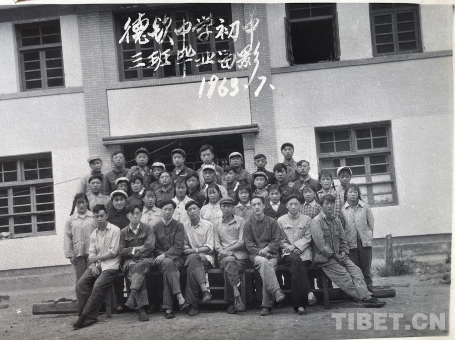 圖為1963年,訪談對象牛宿光(前排左二)與德欽中學初中三班畢業合影 供圖:李志農