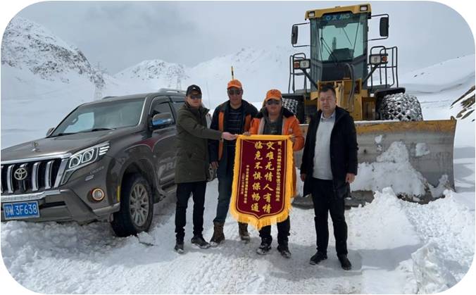 隨著川配項(xiàng)目的進(jìn)駐,我們負(fù)責(zé)管養(yǎng)的S303線,過(guò)往車(chē)輛70%為川配項(xiàng)目物資運(yùn)輸車(chē)輛。2023年3月1日,中冶交通建設(shè)集團(tuán)有限公司翻越果扎拉山,將一面寫(xiě)著“災(zāi)難無(wú)情人有情,臨危不懼保暢通”的錦旗送到了我們4名保通員手中。他們說(shuō),每每經(jīng)過(guò)果扎拉山,白茫茫一片公路,其中閃現(xiàn)著橘色的身影,既讓他們心安,又讓他們心疼,更讓他們佩服。來(lái)西藏前,他們只是聽(tīng)說(shuō)過(guò)“兩路”精神、老西藏精神,進(jìn)入施工后,才懂得那橘色的身影就是“兩路”精神的化身。