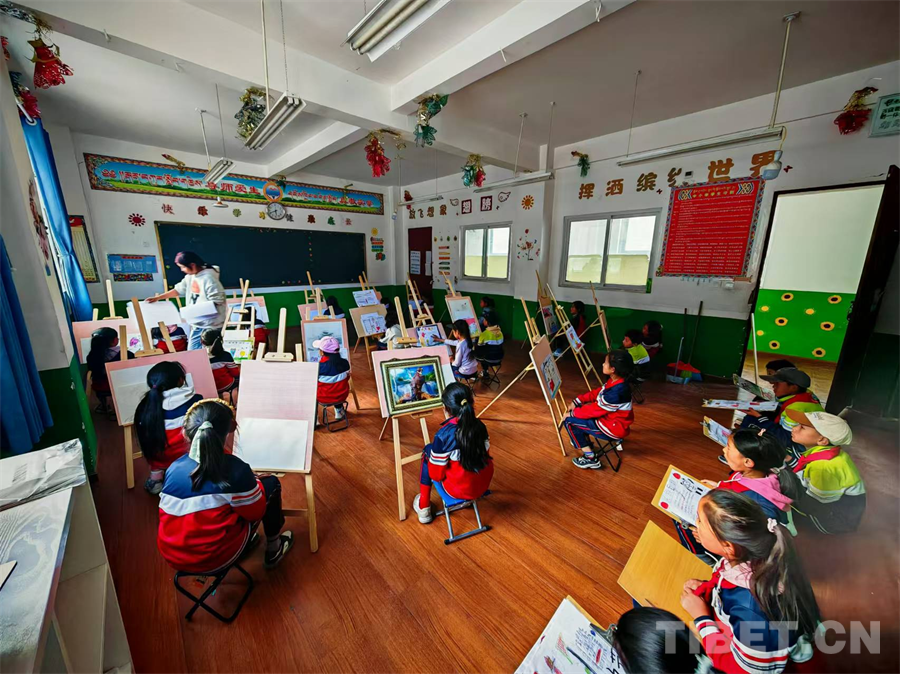 圖為洛隆縣俄西鄉(xiāng)第一小學的繪畫課