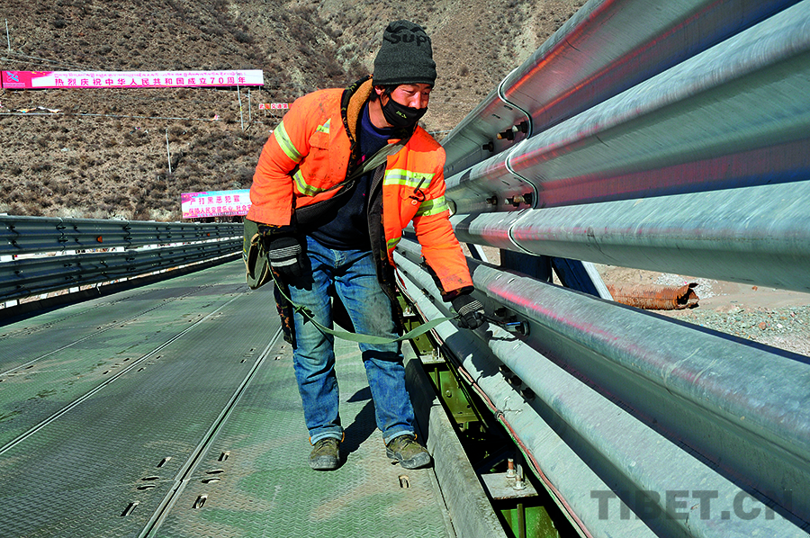 在西藏公路上行車,往往能見到忙碌的養(yǎng)護(hù)人。他們要么揮锨清除公路邊的雜物,要么驅(qū)車沿途巡查,要么在群山中清除路障,要么在緊鋼架橋護(hù)欄上的螺絲。在一條條公路上,川流不息的不僅有車輛,還有勇往直前的徒步者。有沒有人注意到,自己春夏秋冬能在西藏大地上自由穿梭,是因?yàn)楦咴系拇舐菲教箷惩ā樗麄儽q{護(hù)航的,正是那些猶如盛開在山腳下、公路旁黃色小花的養(yǎng)護(hù)人。