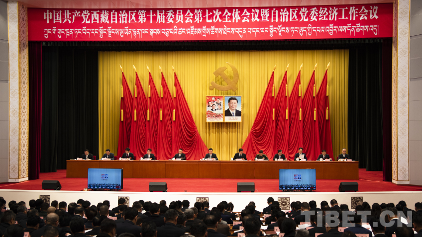 圖為中國(guó)共產(chǎn)黨西藏自治區(qū)第十屆委員會(huì)第七次全體會(huì)議暨自治區(qū)黨委經(jīng)濟(jì)工作會(huì)議現(xiàn)場(chǎng) 攝影:趙振宇