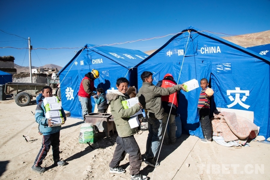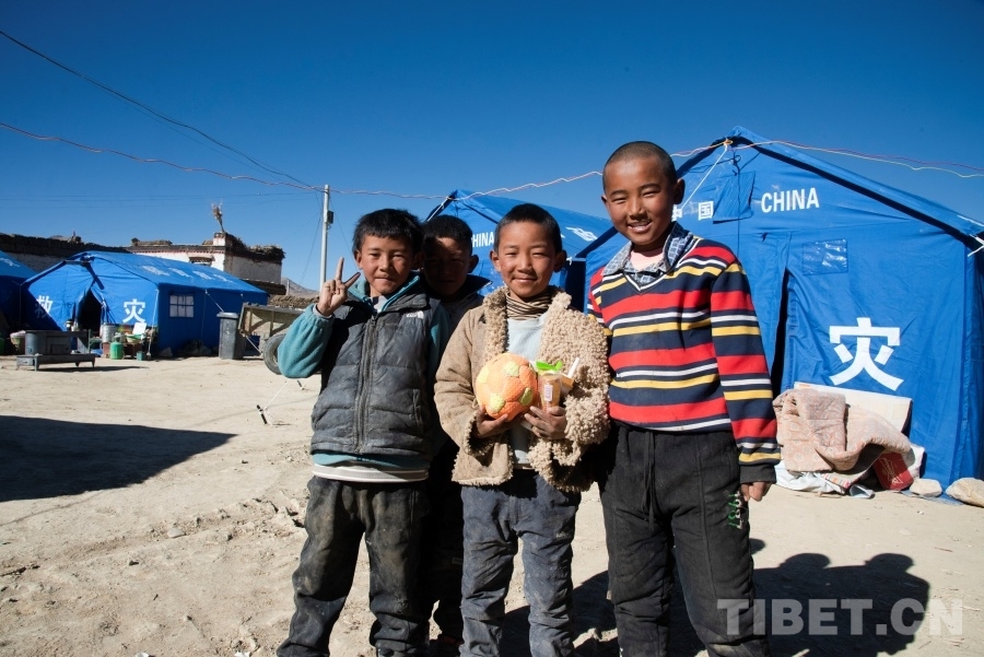 中國西藏網訊 “如果沒有發生地震,我們現在應該在村子里踢足球吧!”1月9日,在西藏日喀則市定日縣曲洛鄉措昂村受災安置點內,幾名小男孩正在空地上追著足球奔跑,朝著記者的鏡頭比出“耶”的手勢。