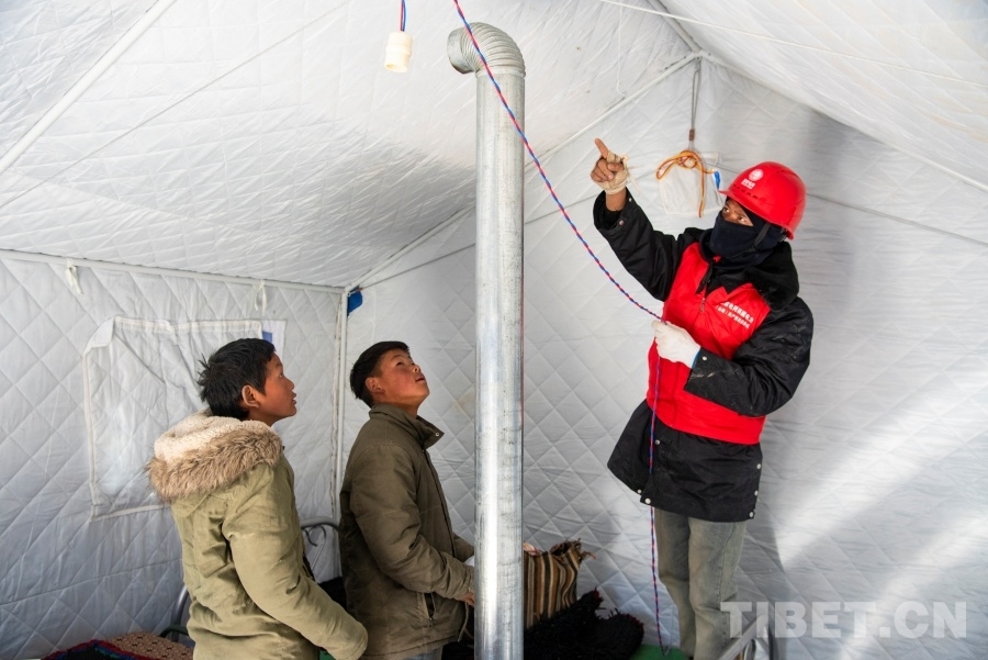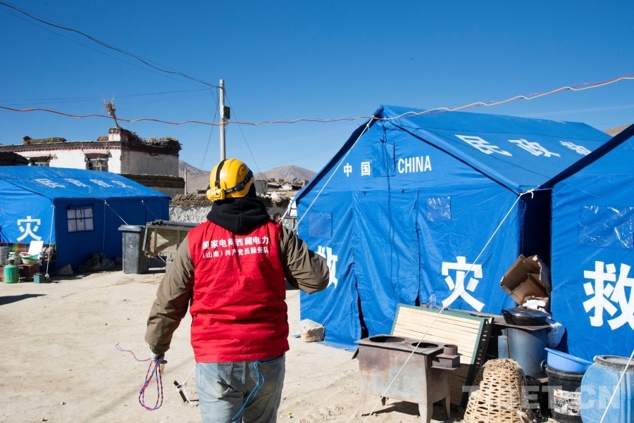 “我們是一支50人組成的支援隊伍,地震發生的第一天就已經從山南趕到定日縣,分成10多個組幫助災區排查電力問題,為受災安置點架設線路,幫助災區群眾恢復電力供應。”服務隊成員次仁旦增說。