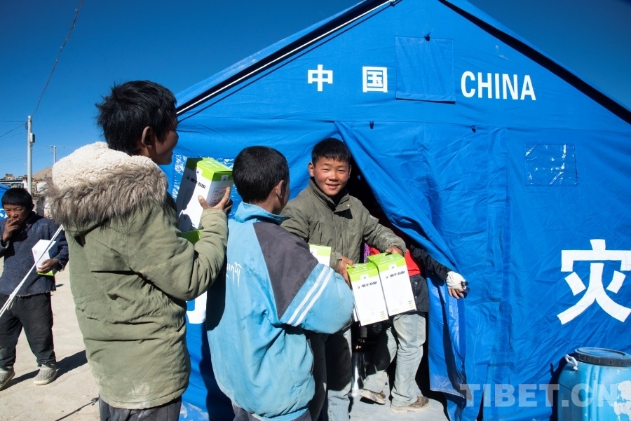 “我們家里的房子全部倒塌了,但好在沒人受傷。”“吃飯、睡覺都沒有任何問題,就是帳篷里還沒有通電。”“如果能夠許一個愿望,我希望這場地震沒有發生。”措昂村的小男孩們將腳下的足球“按下暫停”,向記者講述著他們受災三天的生活情況。三名穿著紅馬甲的救災人員走進安置點,小男孩們迅速將他們圍了起來。