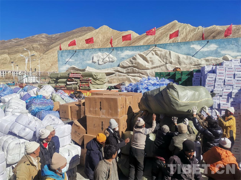 相關地方商務主管部門已向受災地區調運方便面、瓶裝水、面包、糌粑、酥油等食品15.3萬箱以及電熱毯、取暖爐、棉被、棉衣、毛毯等物資7.3萬件。