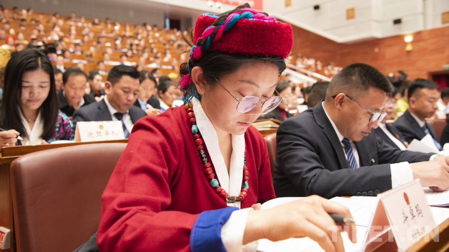 圖為西藏自治區人大代表聆聽西藏自治區高級人民法院工作報告 攝影:趙振宇