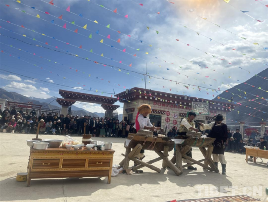 圖為洛隆縣俄西鄉(xiāng)次瓊村開(kāi)展“紅色昌都·振興奮進(jìn)”“麥韻匠心”手磨糌粑技能大賽