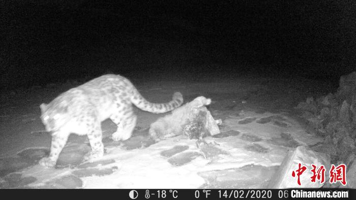 視頻截圖為紅外相機在青海省海北藏族自治州海晏縣夏格爾山拍攝到的雪豹清晰影像。