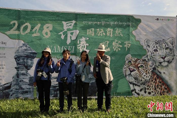圖為2018年昂賽國際自然觀察節上自然觀察愛好者與牧民合影。(資料圖片)中新社記者 羅云鵬 攝