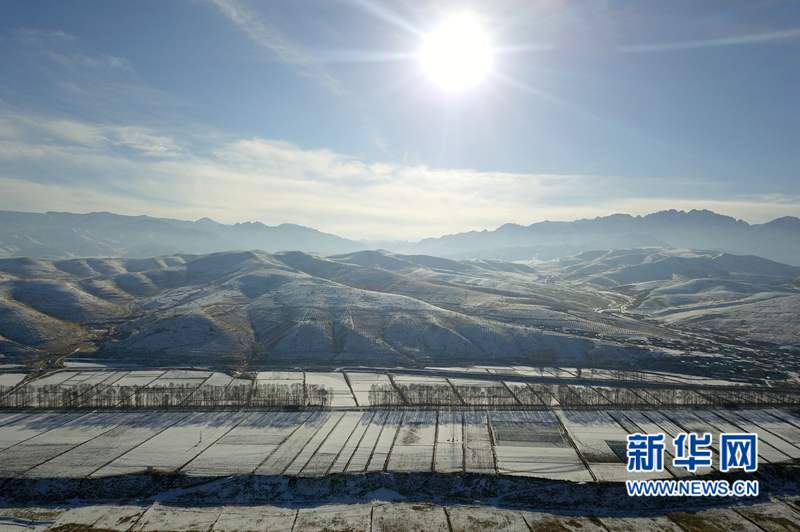 這是1月13日在甘肅省武威市天祝藏族自治縣境內(nèi)拍攝的祁連山下冬日景色(無人機(jī)照片)。新華社記者 范培珅 攝
