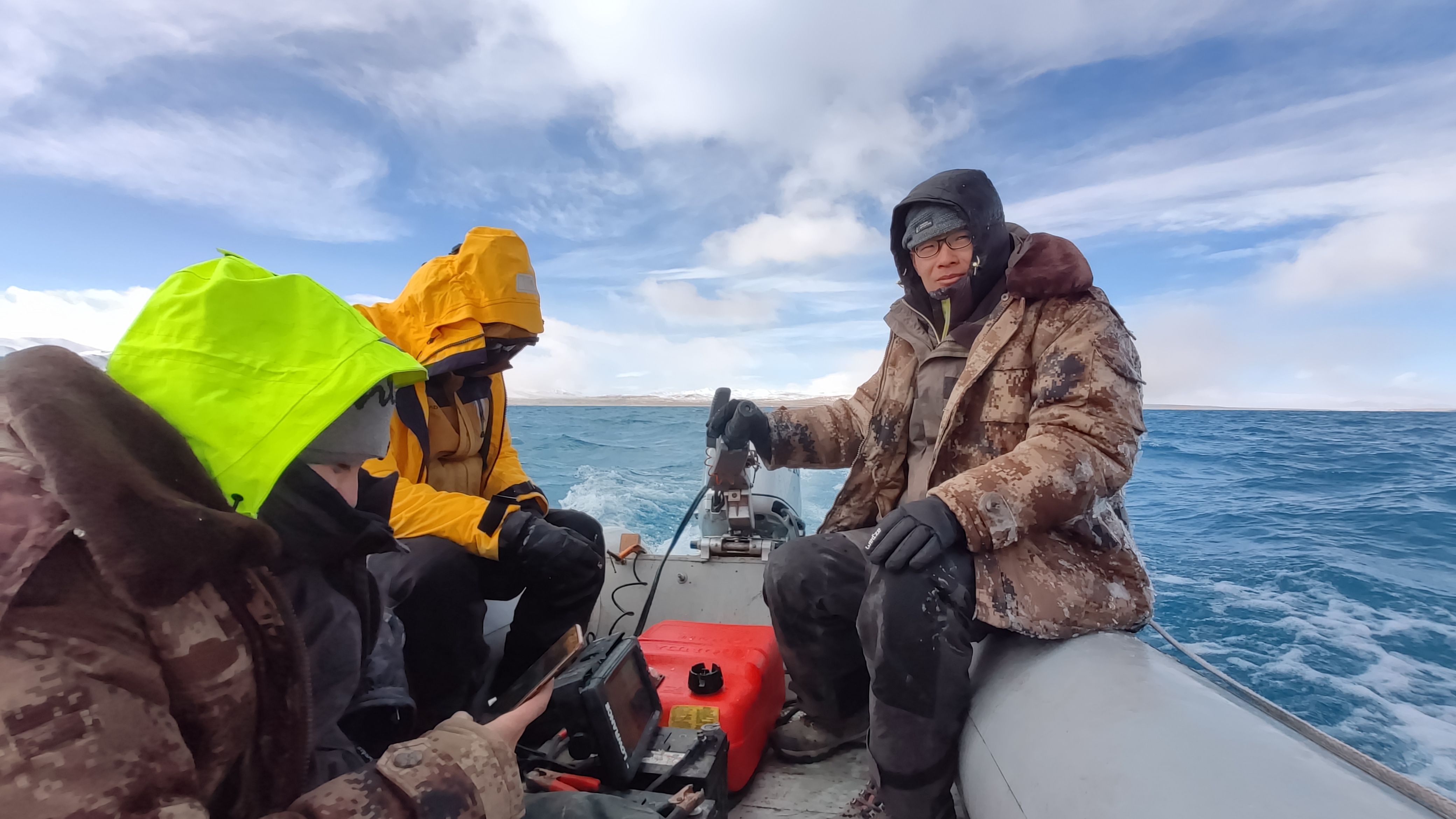 慢慢地,科考隊掌握了規律——湖面經常下午四五點起風。為躲避風浪,隊員們冒著低溫早起工作,下午起風的時候收隊。如果天氣好,趕上哪天下午沒怎么刮風,大家就一鼓作氣干到晚上十一二點再回營。