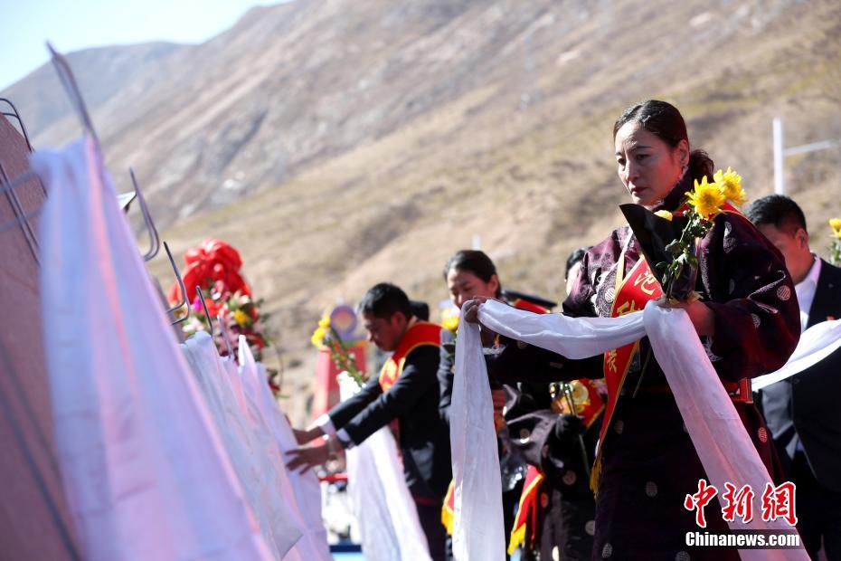 圖為民眾手捧哈達和鮮花緬懷犧牲英烈及罹難同胞。中新社記者 張添福 攝