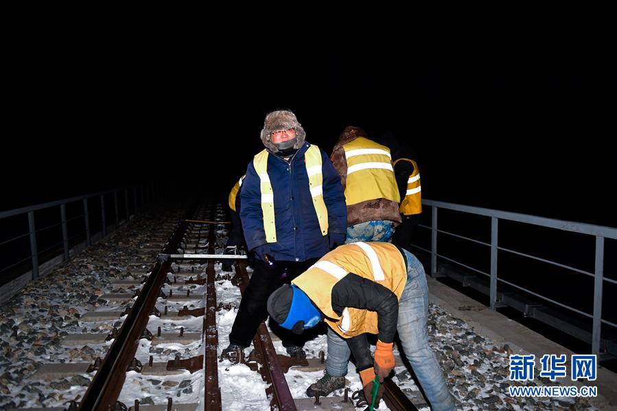朔風像刀子一樣刮過地表,海拔4500米的昆侖山腹地楚瑪爾河車站附近,幾束晃動的亮光刺破了生命禁區的黑暗,中國鐵路青藏集團有限公司格爾木工務段望昆線路車間的十幾個養護工在鐵軌上敲敲打打,零下二十多攝氏度的氣溫使工人棉帽上掛著出汗凝成的霜。