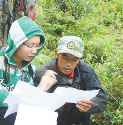 余文武(右)和科研人員開展滇金絲猴保護情況調查。賴建東攝