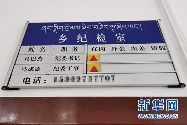 青海省黃南藏族自治州同仁市曲庫乎鄉設置的“干部去向告知牌”。新華網 王志艷 攝