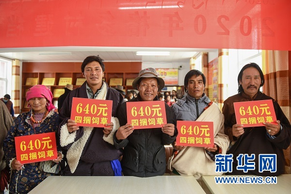 2020年格多村建檔立卡貧困戶獲得產業資金分紅。新華網 潘彬彬 攝