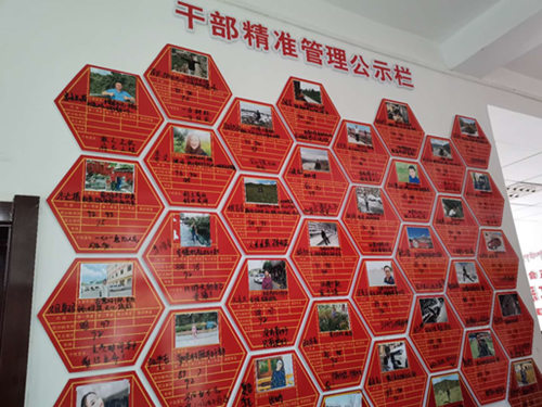 黨政辦公樓內部,由幾十張黨員信息卡拼成的干部精準管理公示欄貼滿整面墻壁。信息卡上,每名黨員的工作任務一目了然,更有民主評議分數反映著不同黨員日常工作獲村民的滿意程度。
