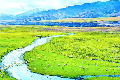 離開扶貧車間,記者繼續驅車前往曲麻萊縣。沿途,陽光明媚、綠意盎然——當地司機告訴記者,這些路邊綠意,有的幾年前還是“黑土灘”,“現在不一樣嘍!黑土灘變成綠地毯,風景好了,日子也越過越好!”
