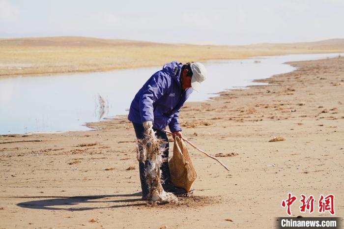 青海湖國家級自然保護區管理局的工作人員在野外進行監測(2019年9月23日攝)。新華社 李琳海 攝