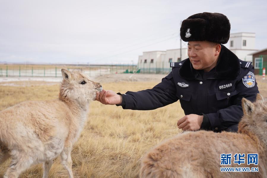 12月7日,可可西里索南達杰保護站站長趙新錄在撫摸藏羚羊幼仔。新華社記者 藍翔 攝