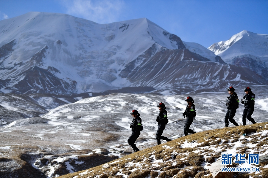 1月9日,青海省果洛藏族自治州公安局特警支隊直屬女子中隊的隊員們在參加高原野外適應(yīng)性訓(xùn)練。新華社記者 張龍 攝