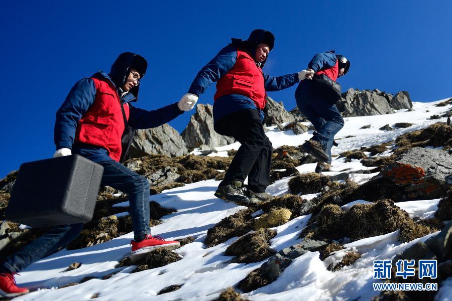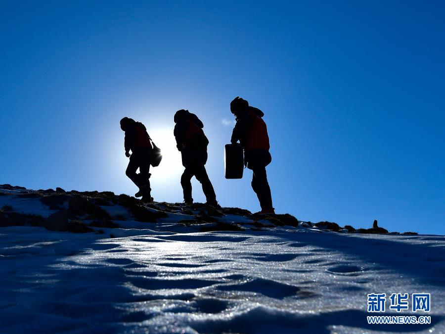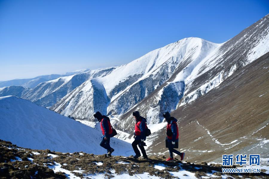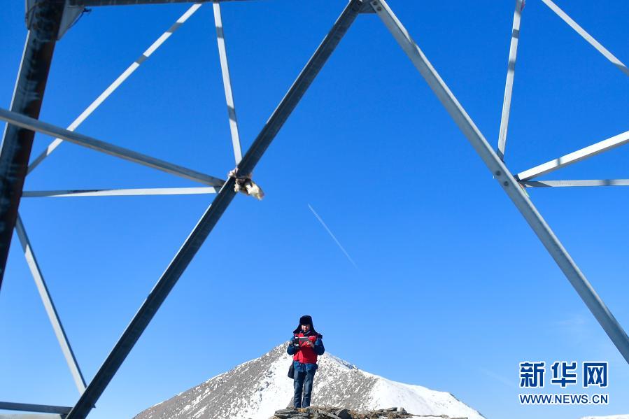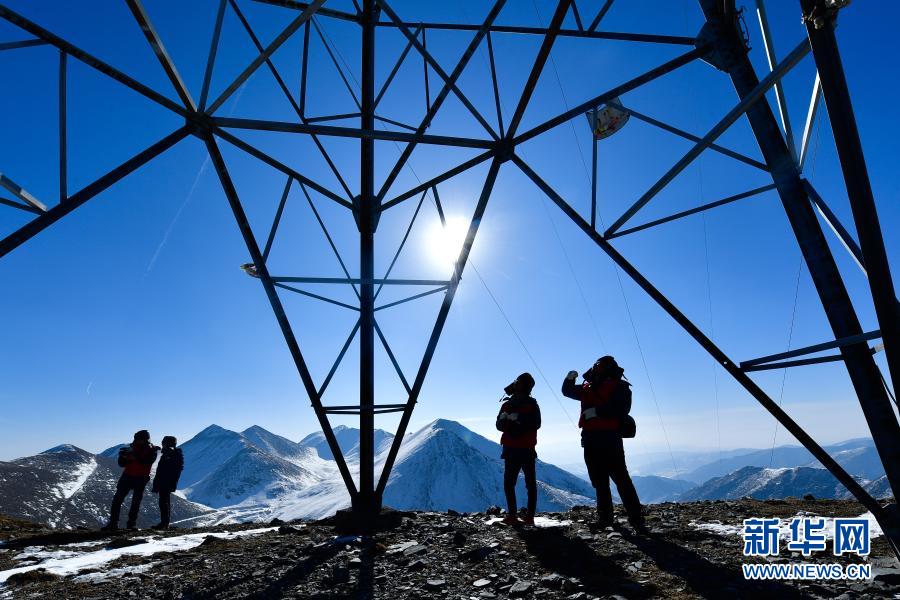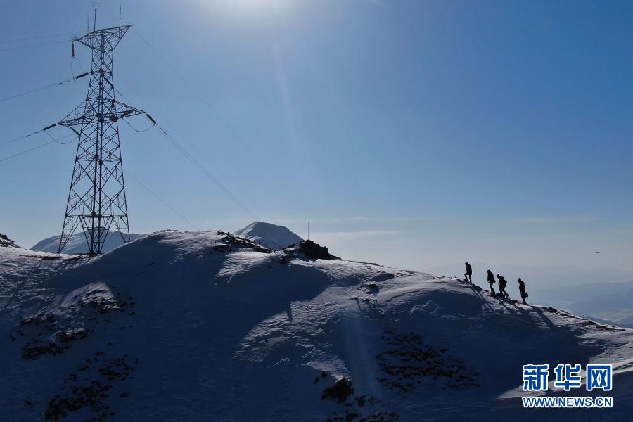 1月21日,國家電網西寧供電公司輸電運檢中心運檢人員在登山巡檢。新華社記者 張龍 攝