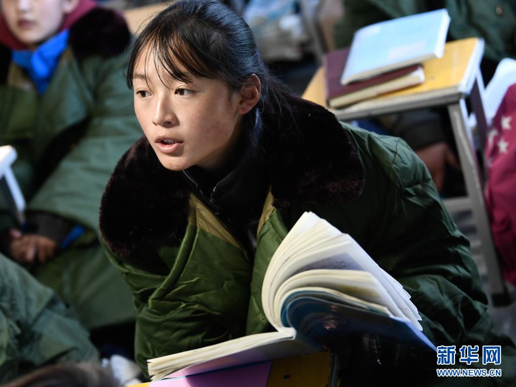5月24日,曲邁卓瑪在瑪多縣民族寄宿制中學帳篷教室里讀書。新華社記者 張龍 攝