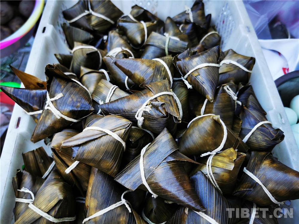 中國西藏網訊 “杏兒紅、麥兒黃,五月初五是端陽。門插艾、香滿堂,粽葉香、包五糧。剝個粽子裹上糖,幸福生活萬年長!洗個艾葉澡,泡個艾葉腳,舒舒服服煩惱都趕跑……”時值端午,清晨,哼著自己改編的端午節小曲兒,四川省甘孜藏族自治州巴塘縣居民格桑次仁來到了農貿市場,挑選過節的物品。吆喝聲、招呼聲、歡笑聲,市場里好不熱鬧,格桑次仁用鏡頭記錄下了節日的氛圍。(中國西藏網 通訊員/格桑次仁 記者/李元梅)