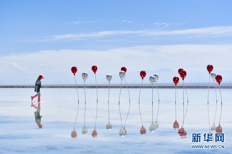 2020年9月4日,游客在青海省烏蘭縣茶卡鹽湖“天空壹號(hào)”景區(qū)游玩。新華社記者張龍攝