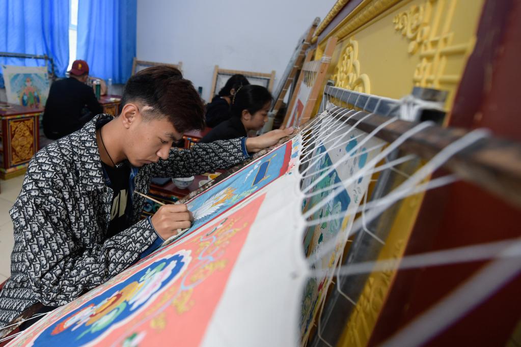 唐卡是藏族文化中獨具特色的繪畫藝術形式,具有鮮明的民族特點,被稱為藏族的“百科全書”,也是中華民族彌足珍貴的非物質文化遺產。2001年,青海民族大學藝術學院創辦全國首個工藝美術(唐卡)專業,將傳統民間藝術納入大學教學體系,實現從民間師徒傳承模式向學校教學模式的轉變,為傳統民族文化培養人才,更好地傳承非遺文化。