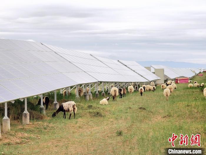 “光伏電站建設在這里,成批量鋪設的光伏板使得園區風速減小,蒸發量下降,空氣濕度增加,草地涵水量大增,在一定程度上遏制了荒漠化的擴大延伸?!?7日,青海省海南藏族自治州塔拉灘光伏產業園區的工作人員對記者說。