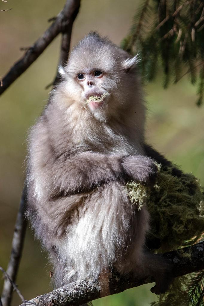 滇金絲猴分布在我國喜馬拉雅山南緣橫斷山系的云嶺山脈,金沙江、瀾滄江之間面積約2萬平方公里的區域內。這些“雪山精靈”長年生活在人跡罕至的高山地帶,堪稱世界上除人類以外棲息海拔最高的靈長類動物。